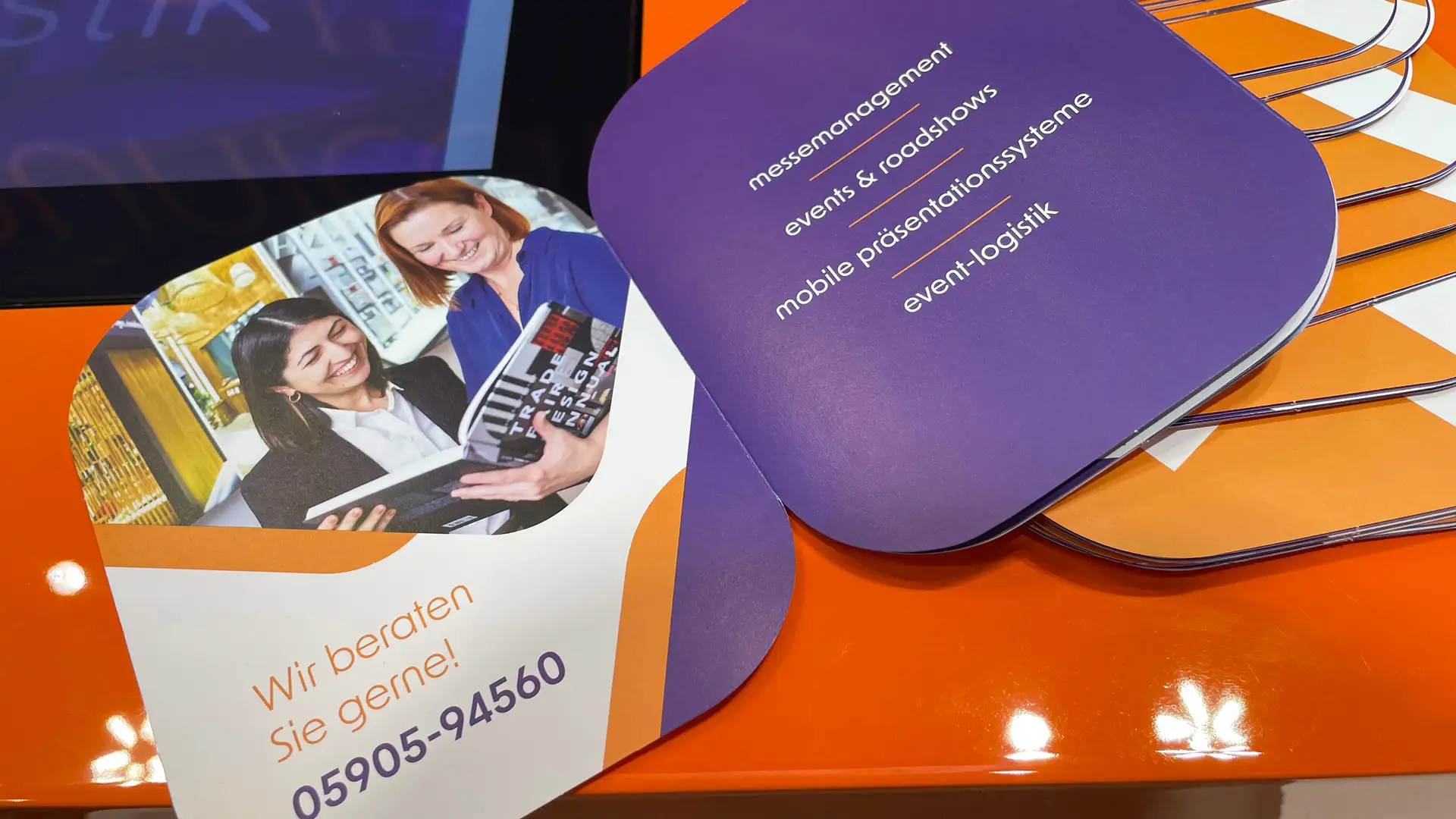 Die fair4you Messebau GmbH präsentiert sich mit einem durchdachten Gesamtauftritt auf der BOE Messe in Dortmund. Passend zum neuen Corporate Design wurden vielfältige Werbemittel gestaltet, darunter stilvolle Thermobecher, praktische Schreibblöcke und hochwertige Kugelschreiber. Das Highlight: Infoflyer, die die Form des Logos aufgreifen. Diese kreativen Elemente schaffen einen einheitlichen und ansprechenden Messeauftritt, der das Profil von fair4you eindrucksvoll unterstreicht.