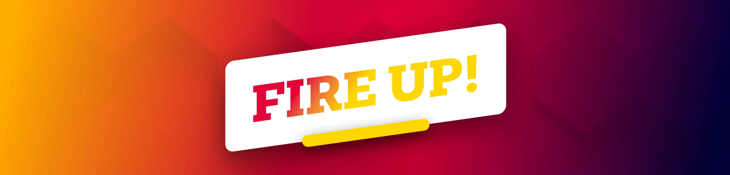Unter dem Slogan „Fire Up!“ entstand ein kraftvolles Design, das sowohl auf einem Flyer als auch auf einer auffälligen Bauzaunplane umgesetzt wurde.